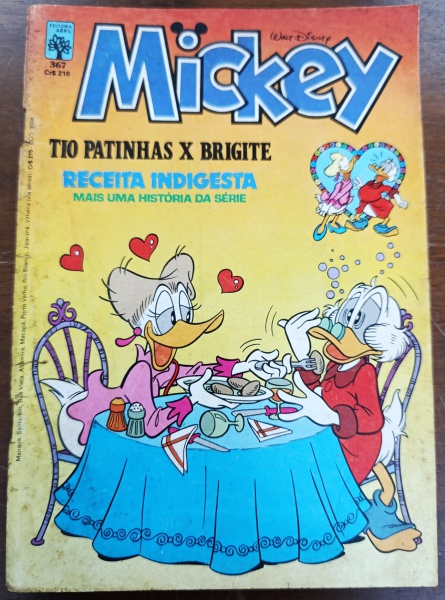 • Revista Mickey Nº 367 - Tio Patinhas X Brigite (Abril 1983)Relíquia histórica lançada originalmente em abril de 1983, este exemplar é o destaque do mês, apresentando a inusitada e hilária dinâmica entre o pato mais rico do mundo e sua eterna pretendente, Brigite