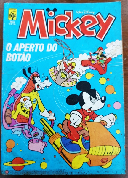 • Revista Mickey Nº 365 - "O Aperto do Botão" (1983)Relíquia histórica da Disney no Brasil, lançada originalmente em fevereiro de 1983. Este exemplar é o destaque do mês, apresentando uma trama futurista com perseguições espaciais e tecnologia imaginária, capturando perfeitamente a estética sci-fi da época.
