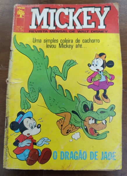 • Revista Mickey Nº 231 - O Dragão de Jade (Janeiro 1972)Raridade absoluta da Editora Abril, lançada originalmente em janeiro de 1972. Este exemplar é icônico por sua temática de aventura oriental e mistério, apresentando o Mickey, a Minnie e o Pluto em uma situação de perigo inusitada que se tornou um clássico das bancas.