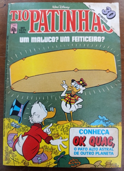 • Tio Patinhas Nº 227 - Estreia de OK Quack (Junho, 1984)Relíquia para colecionadores de quadrinhos Disney! Esta edição é icônica por apresentar a primeira aparição no Brasil de OK Quack, o pato extraterrestre que viaja em uma nave em formato de moeda e se torna um dos "pesadelos" (ou melhores amigos) do Tio Patinhas
