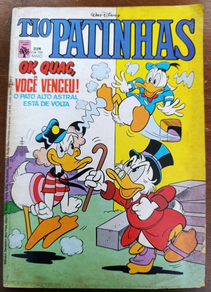 • Tio Patinhas Nº 228 - O Retorno de OK Quack (Maio 1984)Relíquia histórica da Editora Abril, lançada originalmente em maio de 1984. Este exemplar é icônico por trazer de volta o personagem OK Quack, o "Pato Alto Astral" que viaja em uma nave em formato de moeda, em mais uma confusão hilária com o bilionário de Patópolis.