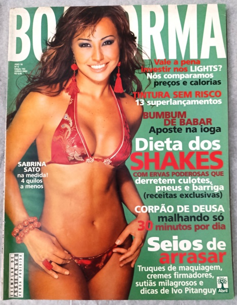 • Revista BOA FORMA  Junho de 2003 (Edição nº 192)  Capa Sabrina SatoEstrelando Sabrina Sato, revelando como conquistou seu corpo "na medida" com 4 quilos a menos.Dieta dos Shakes: Plano exclusivo com ervas poderosas para combater gordura localizada e inchaço abdominal.