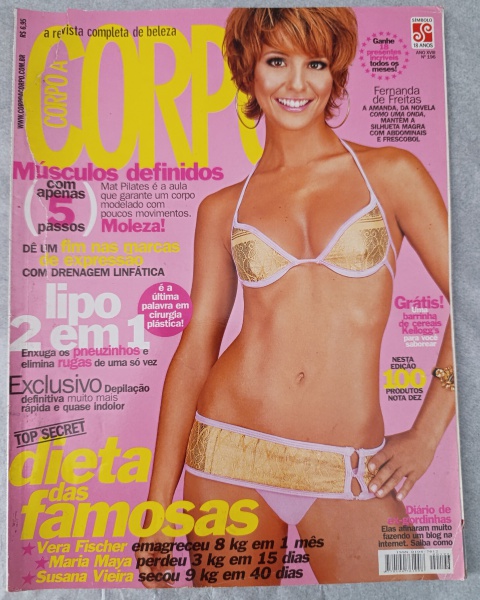 • Revista Corpo a Corpo  Edição nº 196  Capa Fernanda de FreitasEsta edição da revista Corpo a Corpo é uma verdadeira cápsula do tempo dos anos 2000, destacando a atriz Fernanda de Freitas e trazendo segredos de emagrecimento de grandes ícones da TV brasileira