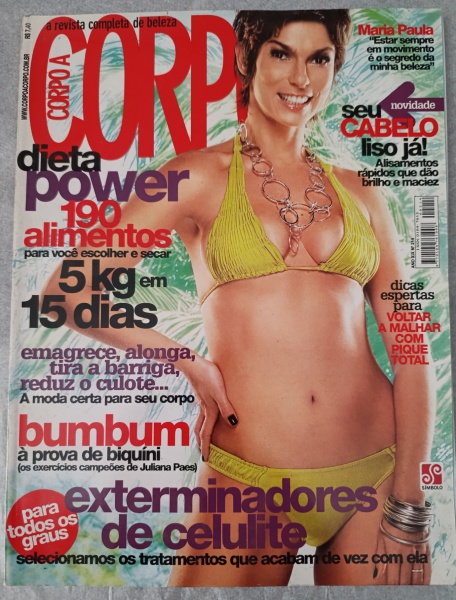 • Revista Corpo a Corpo  Edição nº 174  Capa Luciana GimenezEstrelando Luciana Gimenez, que revela seus 21 segredos exclusivos para manter a forma e a beleza.Emagrecimento: Cardápio completo para perder até 5 kg no mês, com foco especial em quem sente mais fome durante a noite.