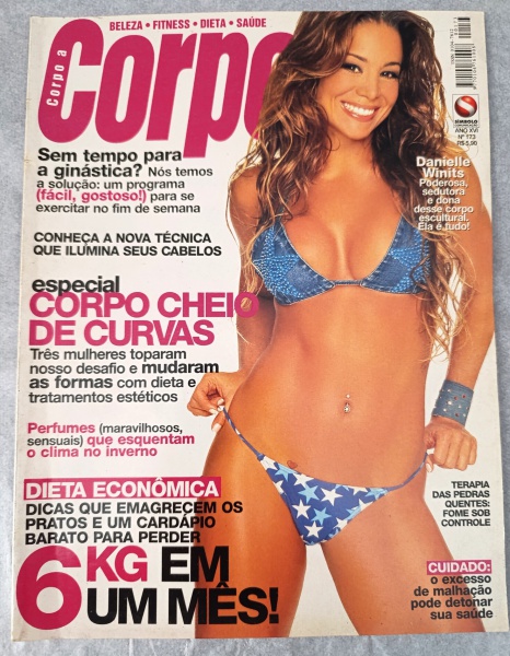 • Esta edição da revista CORPO A CORPO é um item de colecionador que traz a atriz Danielle Winits na capa, apresentando conteúdos focados em beleza, fitness e tratamentos estéticos da época