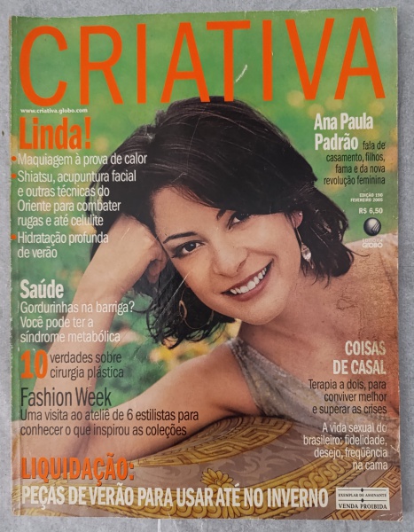 • Revista Criativa  Abril de 2004 (Edição nº 180)  Capa Daniella SarahybaBeleza & Anti-idade: Especial "Feitiço do Tempo" com dicas para driblar rugas e manter o rosto bonito naturalmente.Moda: 154 ideias úteis, incluindo o especial "Inverno Brasileiro" (looks para dias nem tão frios) e truques para um visual mais sexy e sedutor.