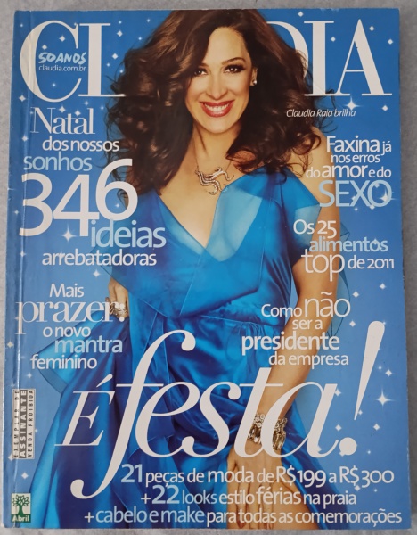 • Revista CLAUDIA - Dezembro de 2010 (Edição Natal e 50 Anos)Relíquia para colecionadores, esta edição histórica celebra os 50 anos da revista e traz a estrela Claudia Raia em uma capa deslumbrante. Um registro marcante de moda, comportamento e festas da virada da década.