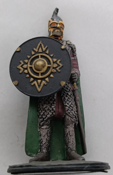 • Miniatura Soldado de Rohan no Abismo de Helm - Coleção Senhor dos Anéis (Eaglemoss)Figura ricamente detalhada apresentando o guerreiro com seu escudo característico, armadura completa e capa verde.