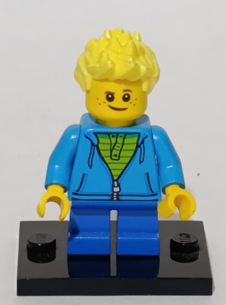 • Menino (Boy) da linha LEGO City, reconhecido pelo seu moletom azul e cabelo espetado.