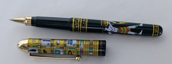 • caneta-tinteiro de coleção de origem alemã, notável por seu design policromado e detalhes em banho de ouro. Este modelo específico é frequentemente identificado como parte de séries editoriais, como a coleção de Canetas de Colecionador da marca Salvat ou Hachette.