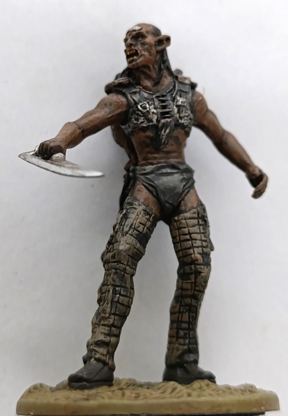 • Miniatura Soldado Orc em Dagorlad - Coleção Senhor dos Anéis (Eaglemoss) Figura dinâmica capturando o Orc com sua arma característica (picareta) erguida, sobre uma base temática que simula o terreno de batalha