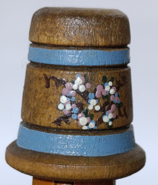 • Dedal de Madeira Vintage Pintado à Mão - Floral Folk ArtMiniatura colecionável em madeira natural com pintura artística manual de flores campestres. Possui acabamento com verniz e detalhes em faixas azuis. Peça única de estilo "Folk Art", em excelente estado de conservação. Ideal para colecionadores de dedais exóticos e itens de costura antigos