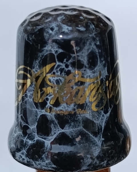 • Dedal Porcelana Arkansas - Souvenir Vintage MarmorizadoItem de colecionador original do estado de Arkansas. Miniatura em porcelana fina com acabamento marmorizado em preto e filete dourado na base. Excelente estado de conservação, sem lascas ou trincas. Ideal para coleções de souvenirs geográficos e dedais de viagem