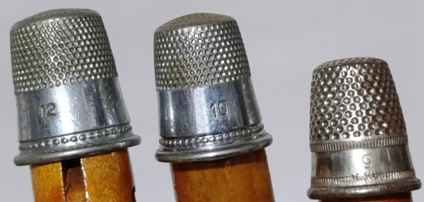 • Conjunto de Dedais Vintage ProfissionaisEste lote é composto por três dedais de metal clássicos, ideais para costura pesada, alfaiataria ou coleção. Diferente de modelos decorativos, estes são ferramentas de precisão com numeração visível.