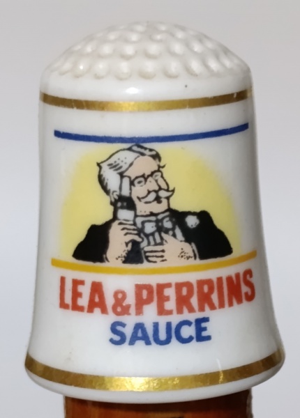 • Dedal Porcelana Lea & Perrins Franklin Mint 1980 - Coleção Country StoreMiniatura original da série "The Country Store" da Franklin Mint de 1980. Peça em porcelana fina com bordas douradas e publicidade clássica do molho inglês Lea & Perrins. Mede aproximadamente 2,5 cm de altura. Item histórico em excelente estado de conservação, ideal para colecionadores de memorabília publicitária e artigos de costura vintage.