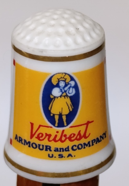 • Dedal Porcelana Armour's Star Ham Franklin Mint 1980 - VintageDescrição: Item original da série "The Country Store" da Franklin Mint, datado de 1980. Miniatura em porcelana fina com bordas douradas e publicidade clássica da Armour & Company. Peça em excelente estado de conservação, sem lascas ou rachaduras. Ideal para colecionadores de memorabília publicitária e artigos de costura vintage.
