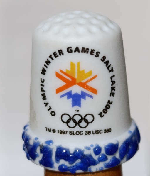 • Dedal de Porcelana Jogos Olímpicos Salt Lake 2002 - VintageItem de colecionador oficial das Olimpíadas de Inverno de 2002. Peça em porcelana branca com o logotipo clássico e acabamento decorativo em azul em relevo na base. Excelente estado de conservação, sem lascas ou rachaduras. Ideal para coleções de memorabília olímpica e dedais históricos