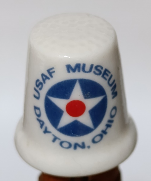 • Dedal Porcelana USAF Museum Dayton Ohio - Souvenir VintageItem de colecionador original do Museu da Força Aérea dos EUA em Dayton, Ohio. Miniatura em porcelana branca com o logotipo clássico da USAF em azul e vermelho. Excelente estado de conservação, sem lascas ou trincas. Ideal para coleções de memorabília militar e dedais de viagem.