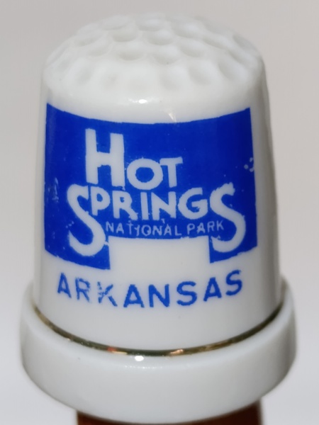 • Dedal Porcelana Hot Springs National Park Arkansas - VintageItem de colecionador original de Hot Springs, Arkansas. Miniatura em porcelana branca com estampa azul clássica e filete dourado na base. Excelente estado de conservação, sem lascas ou trincas. Ideal para coleções de souvenirs de parques nacionais e dedais geográficos