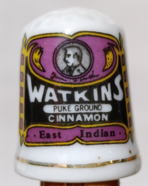 • Dedal Porcelana Watkins Cinnamon Franklin Mint 1980 - Coleção Country StoreMiniatura original da Franklin Mint de 1980. Peça em porcelana fina com bordas douradas e publicidade vintage "Watkins Pure Ground Cinnamon - East Indian". Item clássico em excelente estado de conservação, sem lascas ou trincas. Ideal para colecionadores de memorabília publicitária e artigos de costura vintage.