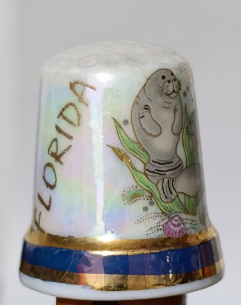 • Dedal Vintage Flórida Souvenir - Porcelana Iridescente e Peixe-Boi