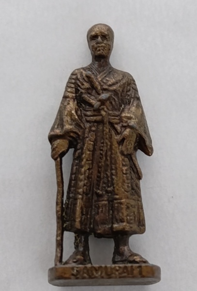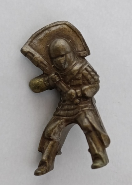 • Miniatura Metal Samurai 1 - Kinder Ovo Anos 90 OriginalItem de colecionador da série "Samurai" de 1993 (K93 N139). Miniatura em metal bronze/dourado com aproximadamente 4 cm de altura. Peça numerada "SAMURAI 1" na base