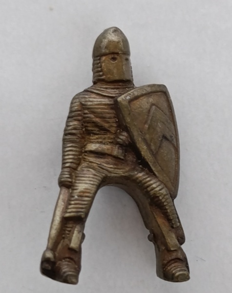 • Miniatura Metal Cavaleiro Ritter 2 K97 N70 - Kinder Ovo 1997Item de colecionador original da série "Cavaleiros a Cavalo" de 1997. Miniatura em latão/metal dourado com aproximadamente 3,5 cm de altura e 11g. Peça catalogada (K97 N70).