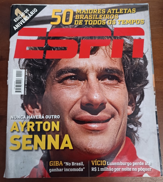 • Revista ESPN Edição de Aniversário: "50 Maiores Atletas Brasileiros de Todos os Tempos"  Capa Ayrton Senna (Nº 13, 2010)Edição especial de colecionador da revista ESPN Brasil, publicada em novembro de 2010. Esta Edição de Aniversário (Nº 13) é um item de destaque por trazer um ranking histórico dos maiores esportistas do país, elegendo Ayrton Senna como a figura central sob a manchete "Nunca Haverá Outro".