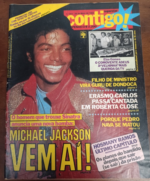• Revista Contigo! Nº 453 (Maio/1984) - Michael Jackson na Capa - Edição Histórica - Este exemplar original de 1984 registra o momento em que o empresário que trouxe Frank Sinatra ao Brasil anunciava a vinda do Rei do Pop ao país.