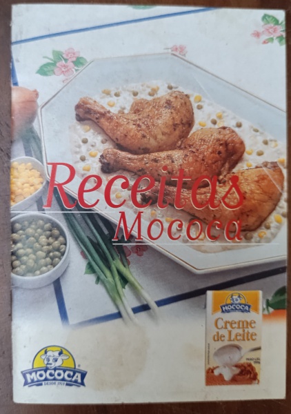 • Livreto Vintage Receitas Mococa  Colecionismo e Gastronomia (Anos 80/90) - livreto de "Receitas Mococa", uma peça publicitária clássica da marca Mococa, provavelmente lançada entre o final da década de 1980 e início dos anos 1990. O material destaca o uso do Creme de Leite Mococa em pratos salgados, como o frango assado ilustrado na capa.