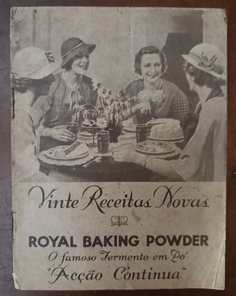 • Raro Livreto "Vinte Receitas Novas"  Royal Baking Powder  Vintage (Anos 20/30) - Raro exemplar original do livreto promocional do famoso fermento em pó Royal Baking Powder, intitulado "O famoso Fermento em Po' Acção Continua". Trata-se de uma peça histórica da publicidade e da culinária doméstica brasileira do início do século XX.