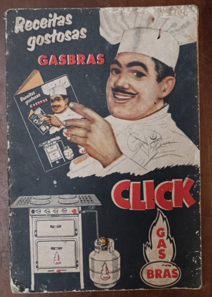 • Livro de Receitas Vintage "Gasbrás"  Original (Anos 50/60)  Relíquia Publicitária - Raro exemplar do livro oficial de receitas da Gasbrás, intitulado "Receitas Gostosas GASBRAS". O item é um marco da publicidade e da modernização das cozinhas brasileiras de meados do século XX.