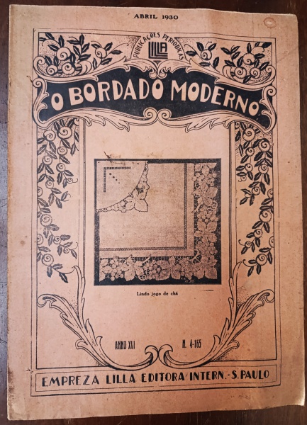• Revista "O Bordado Moderno"  Abril de 1930  Edição Histórica (São Paulo) - Raro exemplar da revista periódica "O Bordado Moderno", publicada em abril de 1930 pela Empreza Lilla Editora Intern., em São Paulo. Esta edição corresponde ao Ano XVI, N. 4-165, sendo um importante registro da cultura e das artes domésticas no Brasil da década de 30.